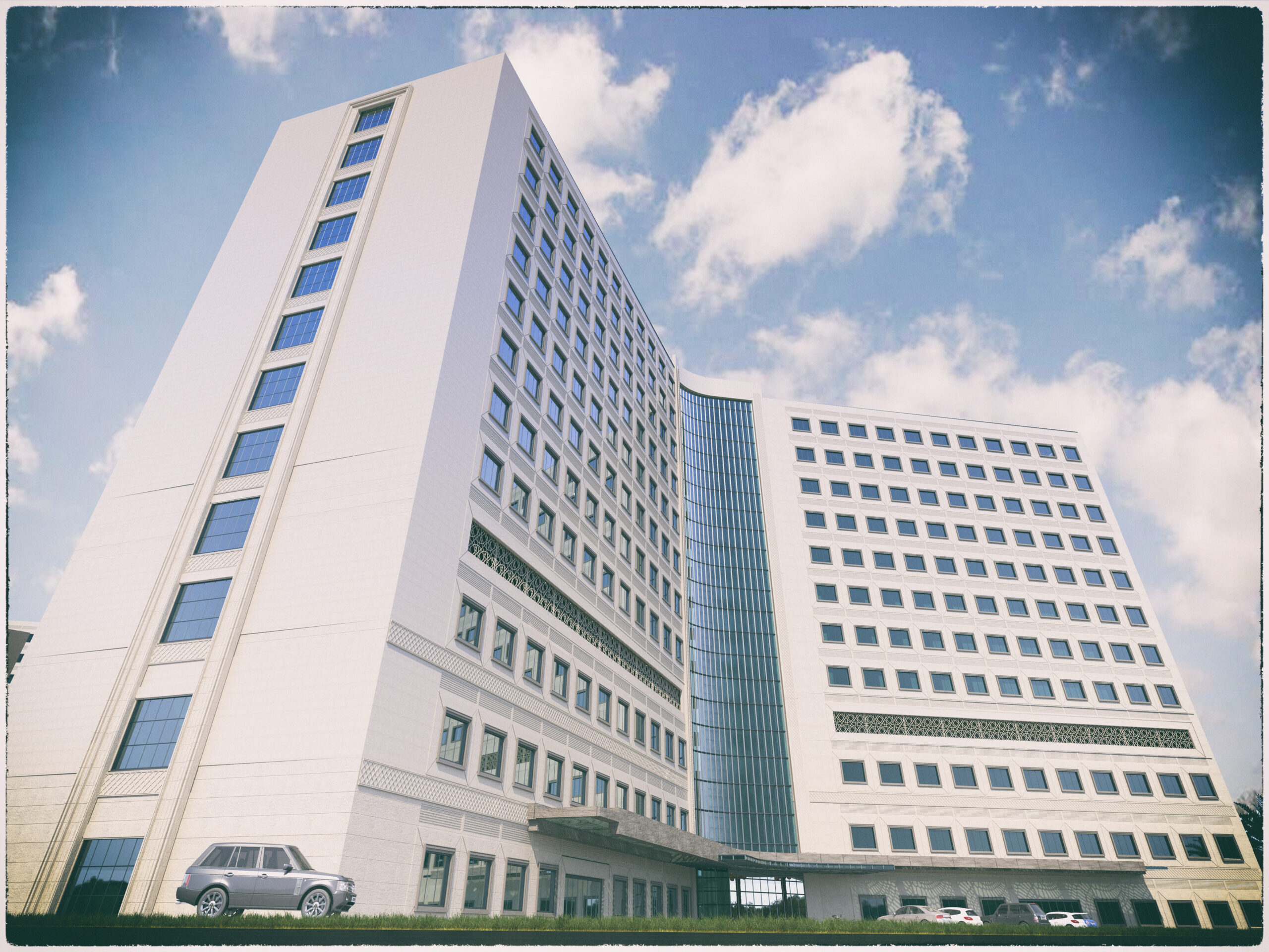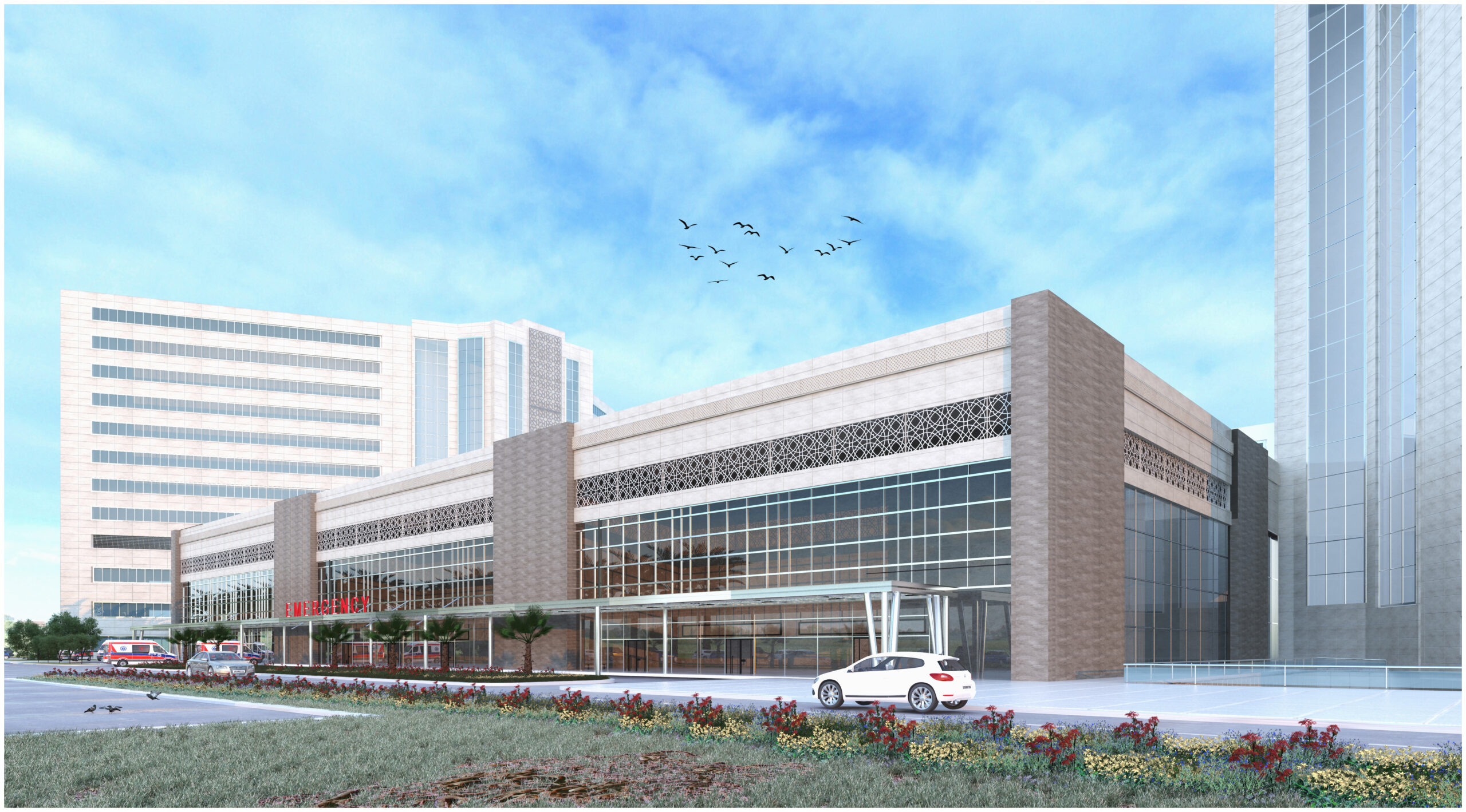 Al Bashir Hastane Projesi, modern sağlık mimarisinin gerekliliklerini estetik ve işlevsel değerlerle birleştiren kapsamlı bir tasarım çalışmasıdır. Dış mekânda güçlü bir mimari kimlik oluşturmak hedeflenmiş; cephe kurgusunda sade çizgiler, ritmik açıklıklar ve doğal ışık kullanımıyla davetkâr bir görünüm elde edilmiştir. Yapının formu, kullanıcı yönlendirmesini kolaylaştıracak biçimde sade ve okunabilir bir düzende şekillendirilmiştir. İç mekân tasarımında ise insan odaklı bir yaklaşım benimsenmiş, ferahlık, hijyen ve konfor ilkeleri ön planda tutulmuştur. Doğal ışığı içeri taşıyan geniş açıklıklar, nötr renk paletleri ve dayanıklı malzemeler, hem çalışanlar hem de hastalar için huzurlu bir atmosfer yaratır. Al Bashir Hastane Projesi, sağlık yapılarında işlevselliği estetik bir dengeyle sunan, çağdaş ve sürdürülebilir bir mimari anlayışın yansımasıdır.